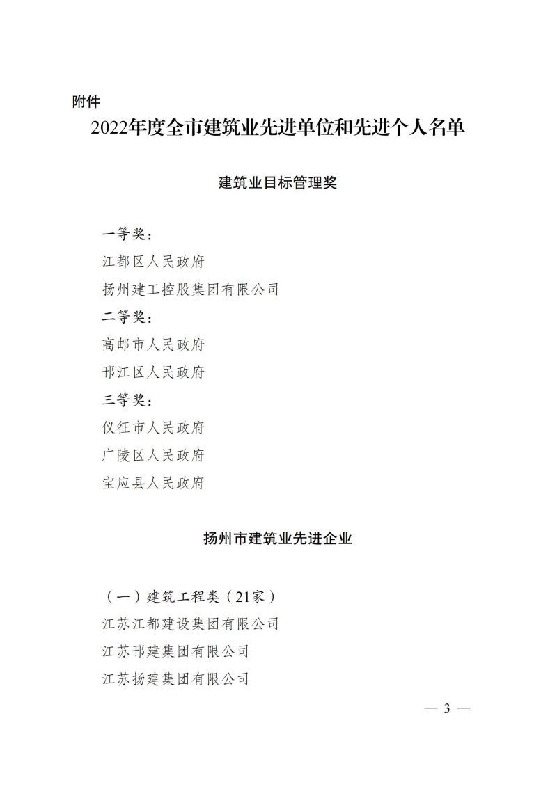 市政府关于2022年度全市建筑业先进单位和先进个人的通报